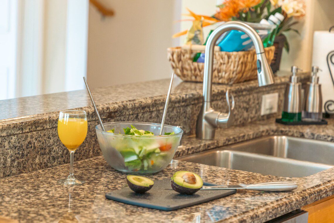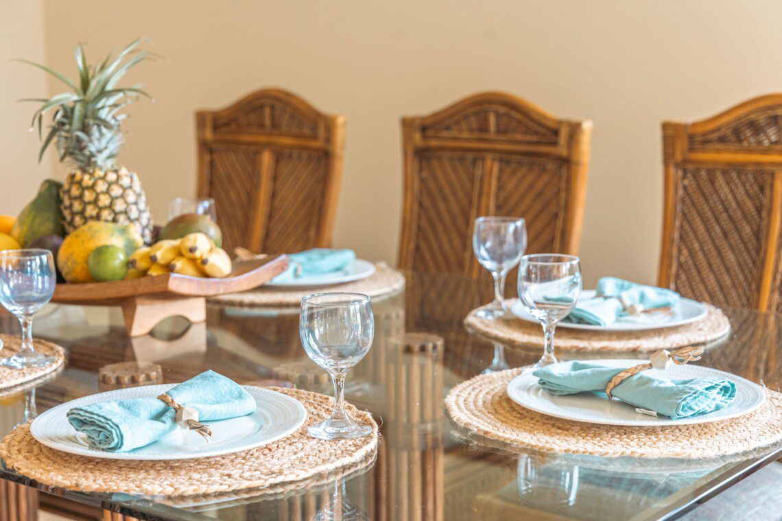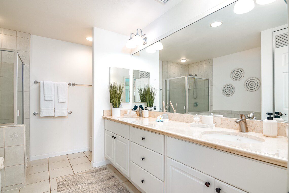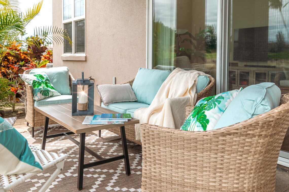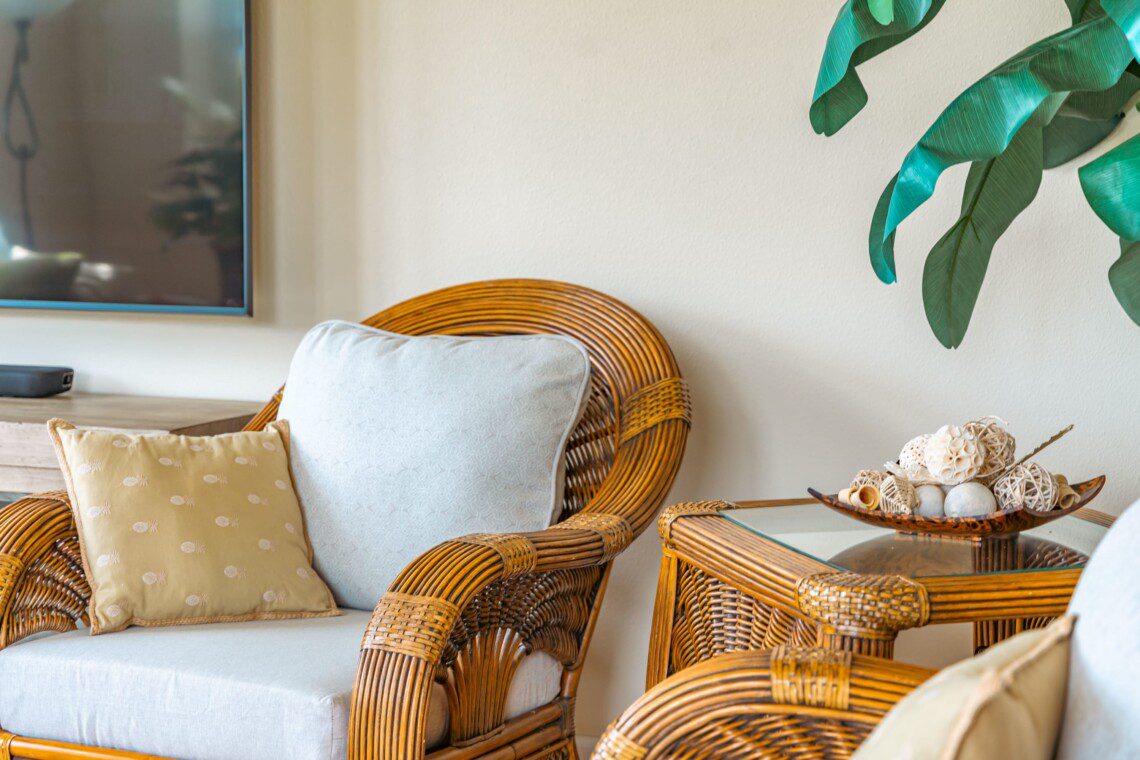 Fully stocked kitchen with modern appliances and a dining area that opens to the lanai with additional seating. Whether you’re preparing island-inspired meals or enjoying takeout, everything you need is at your fingertips.
