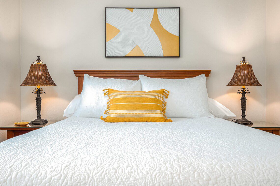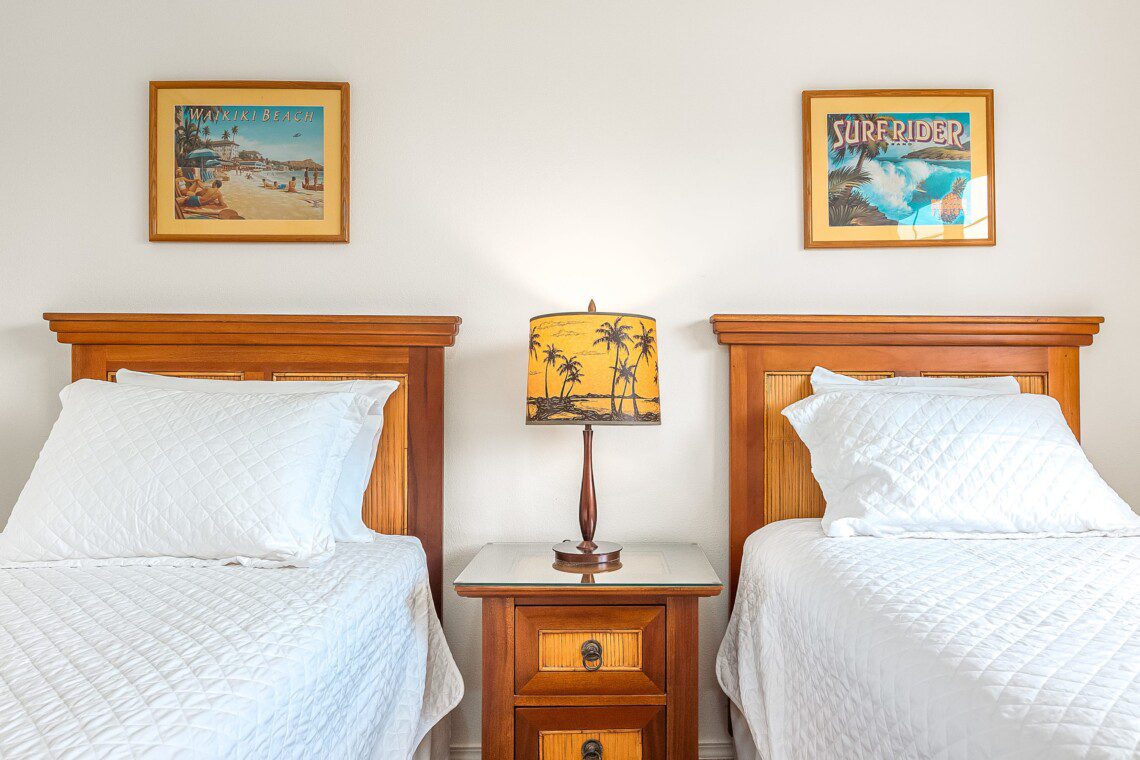 Modern Hawaiian décor, plush bedding, and blackout shades in every room for restful sleep.