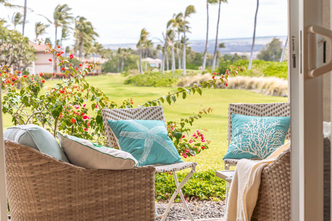 Step outside to take in the stunning, unobstructed views — with no fences to block the natural beauty of the mountains, golf course, sunrises and nightly stars. Let the trade winds, birdsong, and island light become part of your daily rhythm.