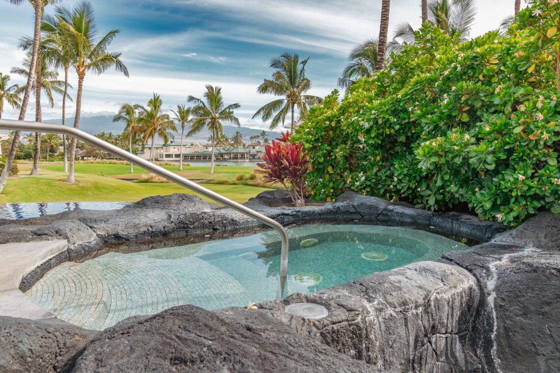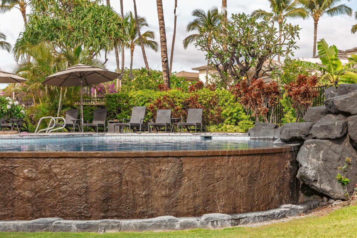 Within Waikoloa Fairway Villas – large heated infinity pool with hot tub, plenty of seating and sun bathing areas. Gym. Lots of parking. Unforgettable sunsets – every day.