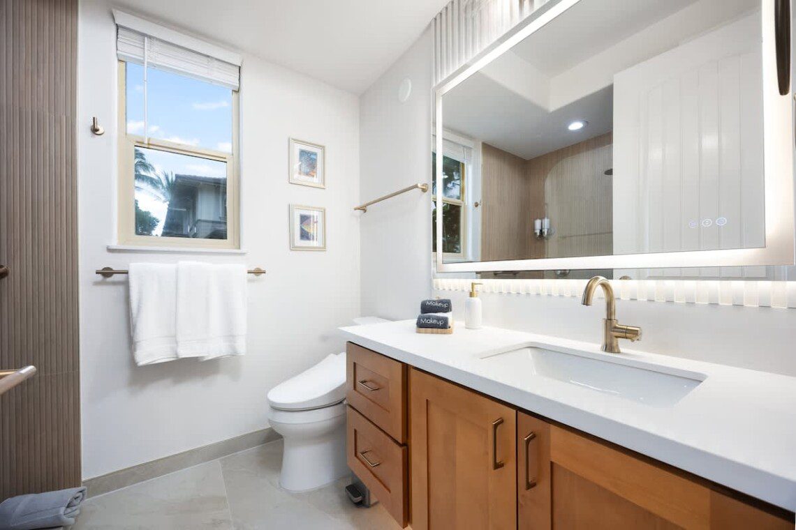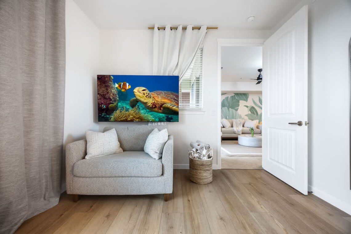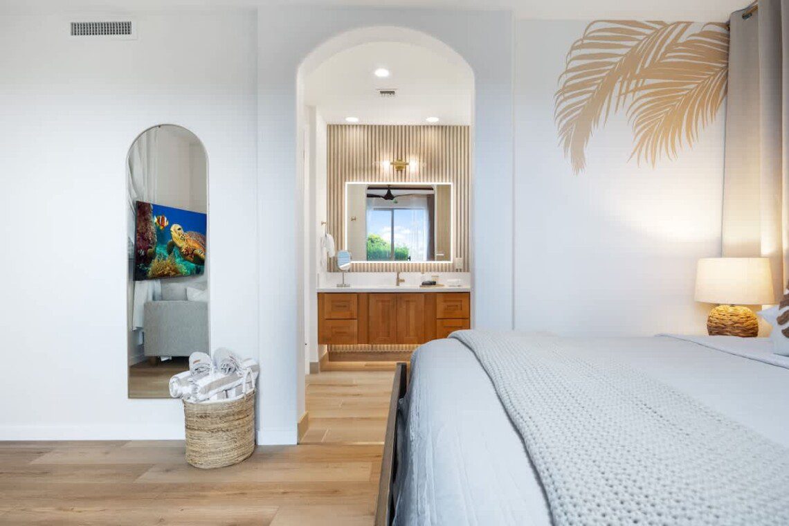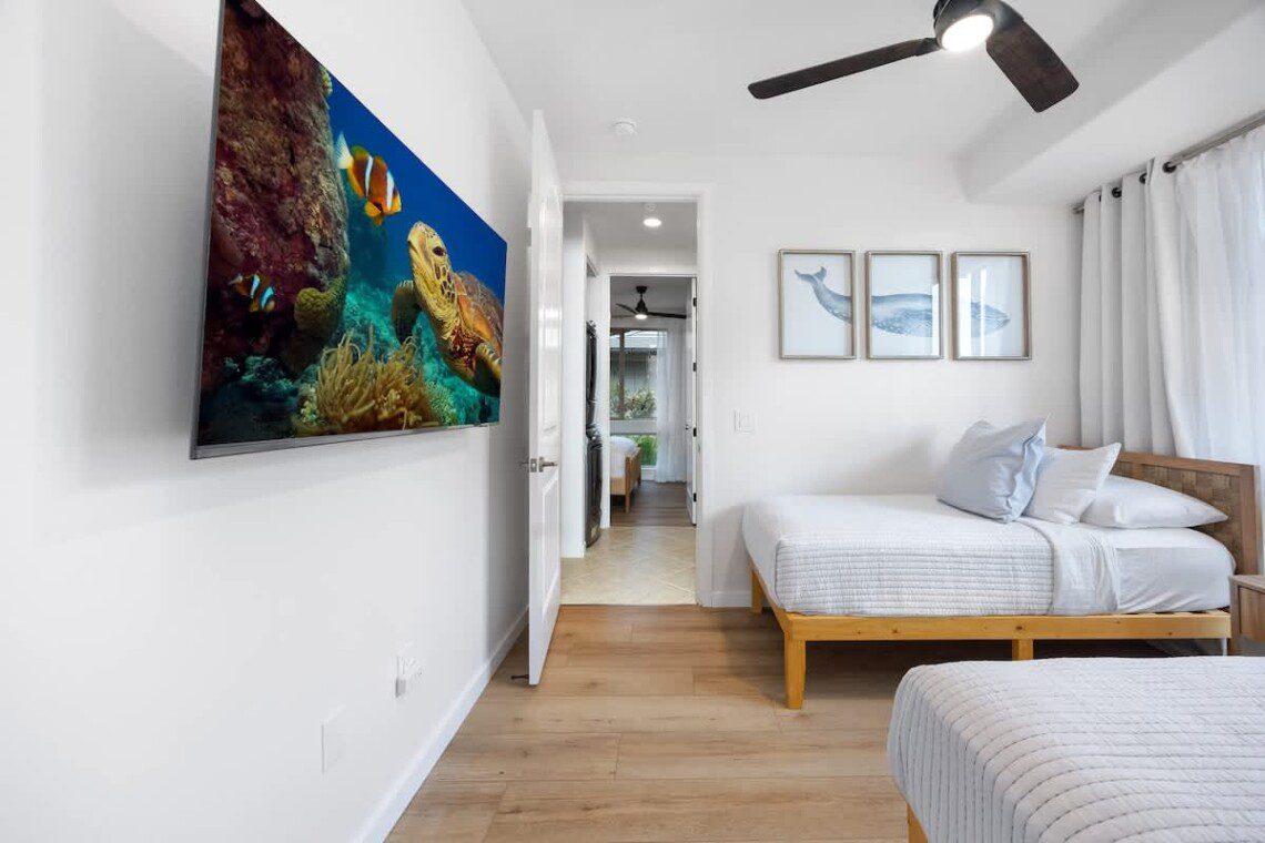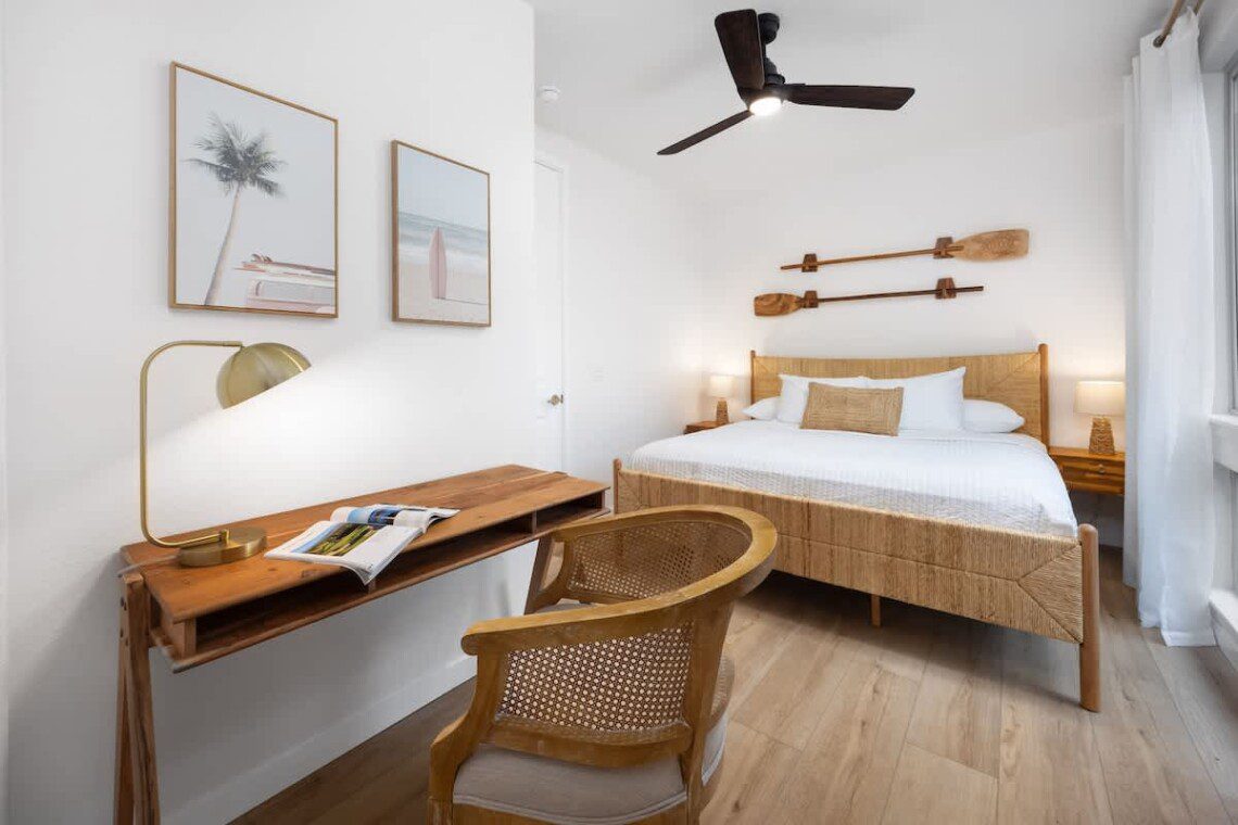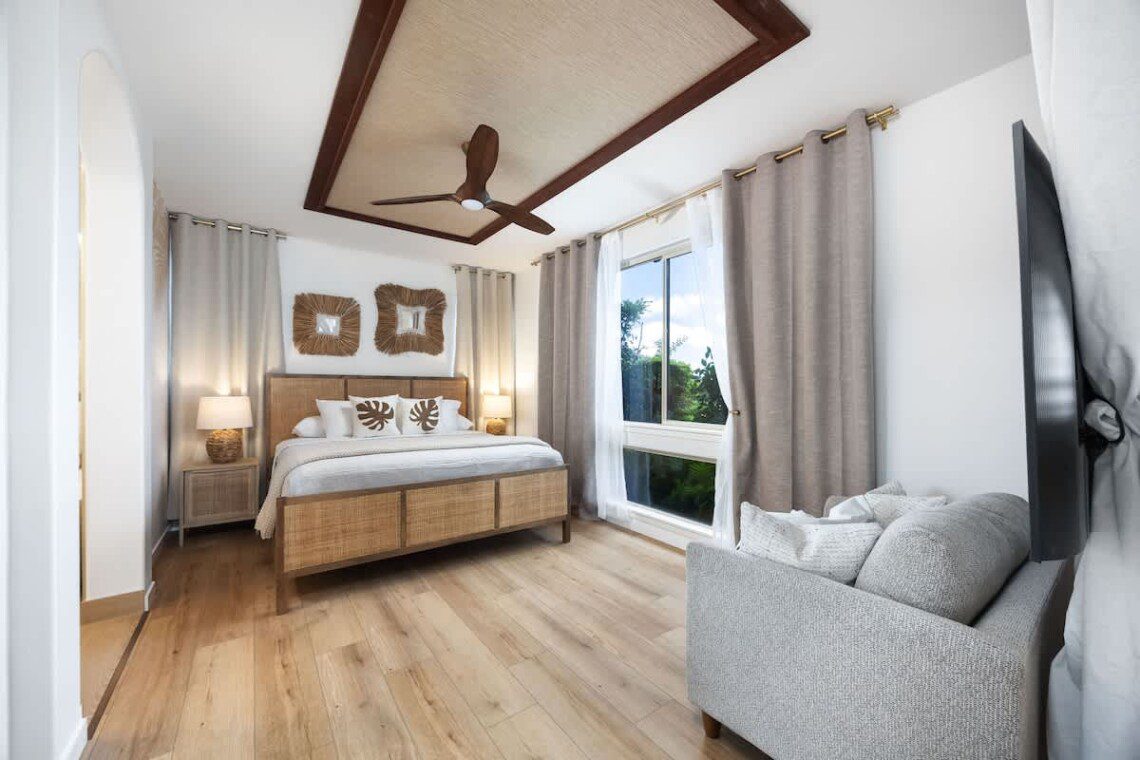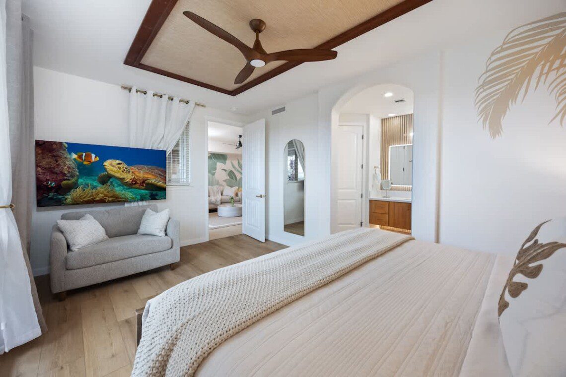 Modern Hawaiian décor, plush bedding, and blackout shades in every room for restful sleep.