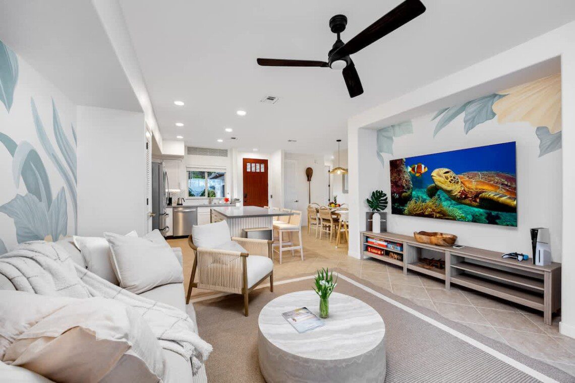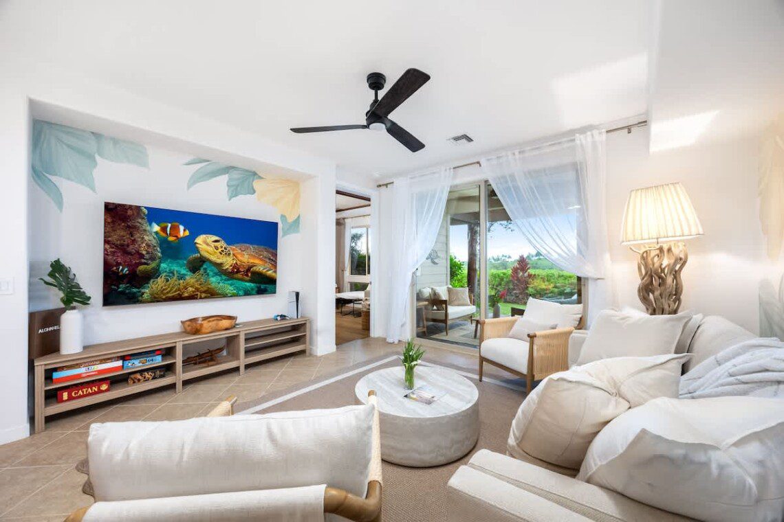 Whether you’re snorkeling with sea turtles, hiking volcano trails, or simply relaxing on the lanai, this vibrant Hawaiian home is your perfect base.