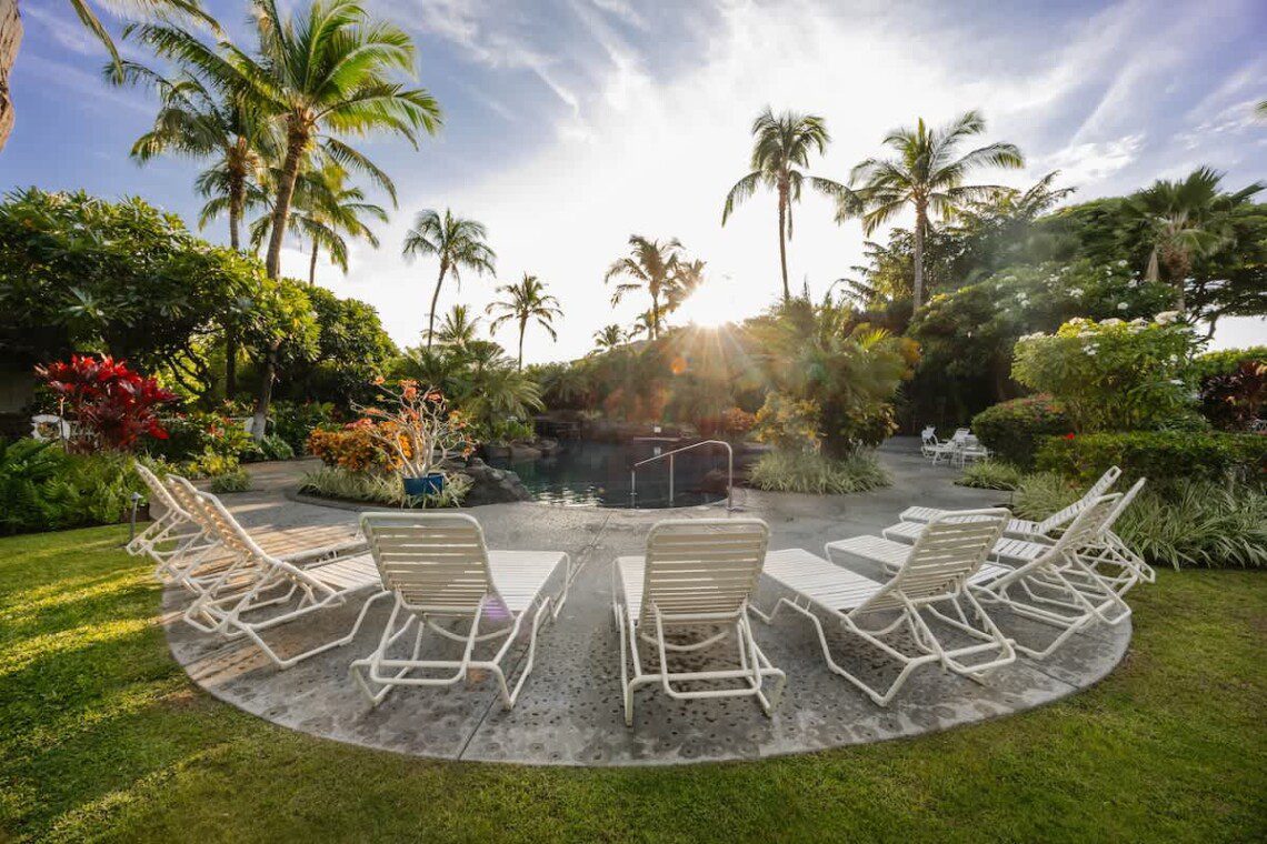 Enjoy easy stroll through the park to one of the most exclusive, pristine beaches on the island – Mauna Lani beach club that offers free cabanas.