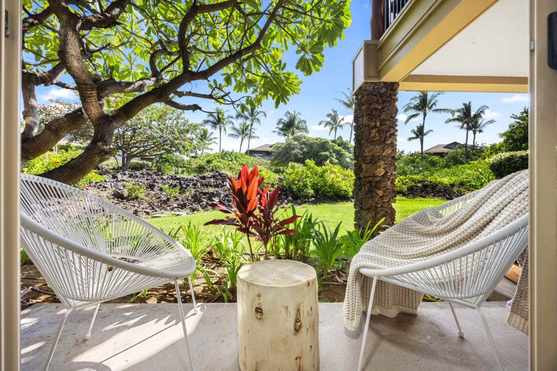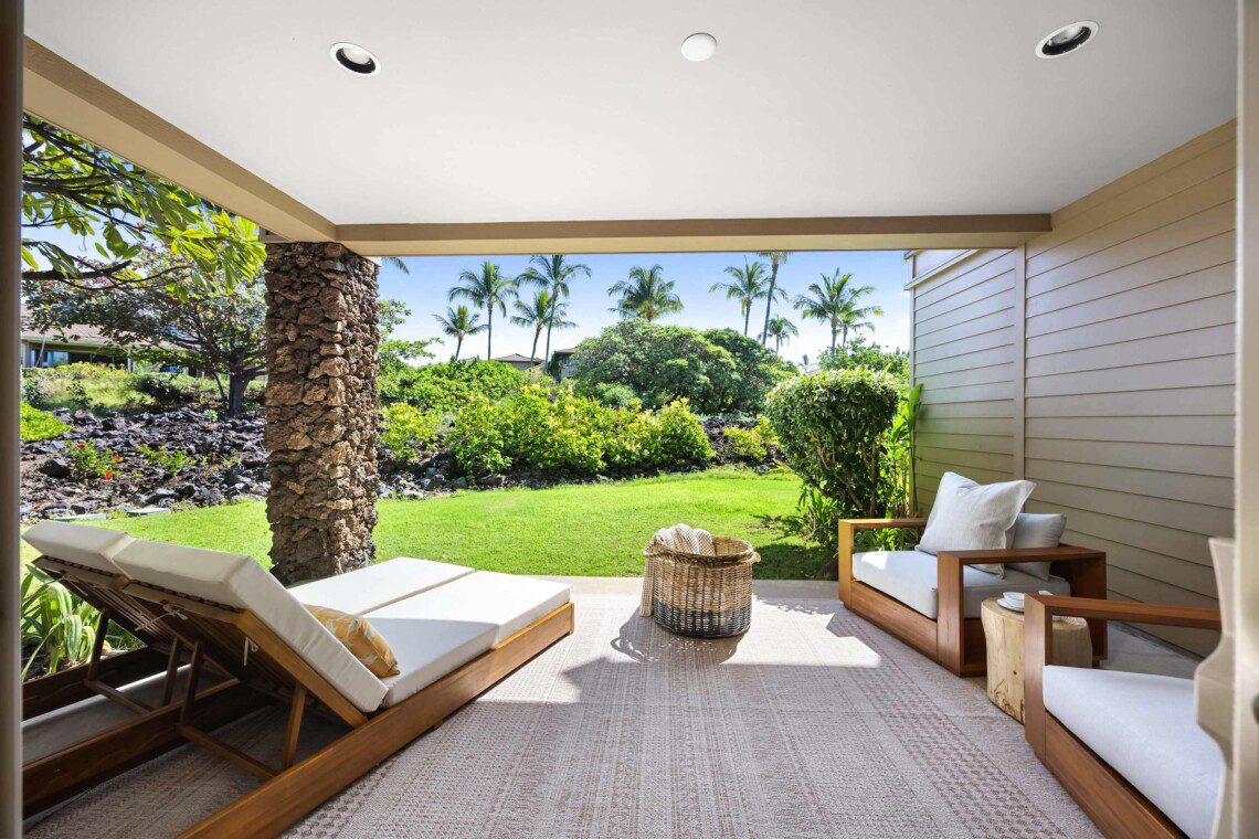 Step outside to take in the stunning, unobstructed views — with no fences to block the natural beauty of the mountains, golf course, evening sunsets and nightly stars. Let the trade winds, birdsong, and island light become part of your daily rhythm.
