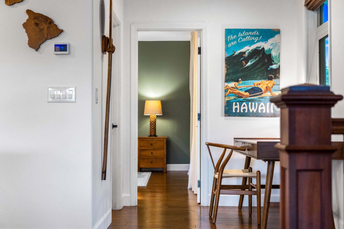 Modern Hawaiian décor, plush bedding (600 thread count cotton sheets), Stern & Foster Mattresses, and blackout shades in every room for restful sleep.