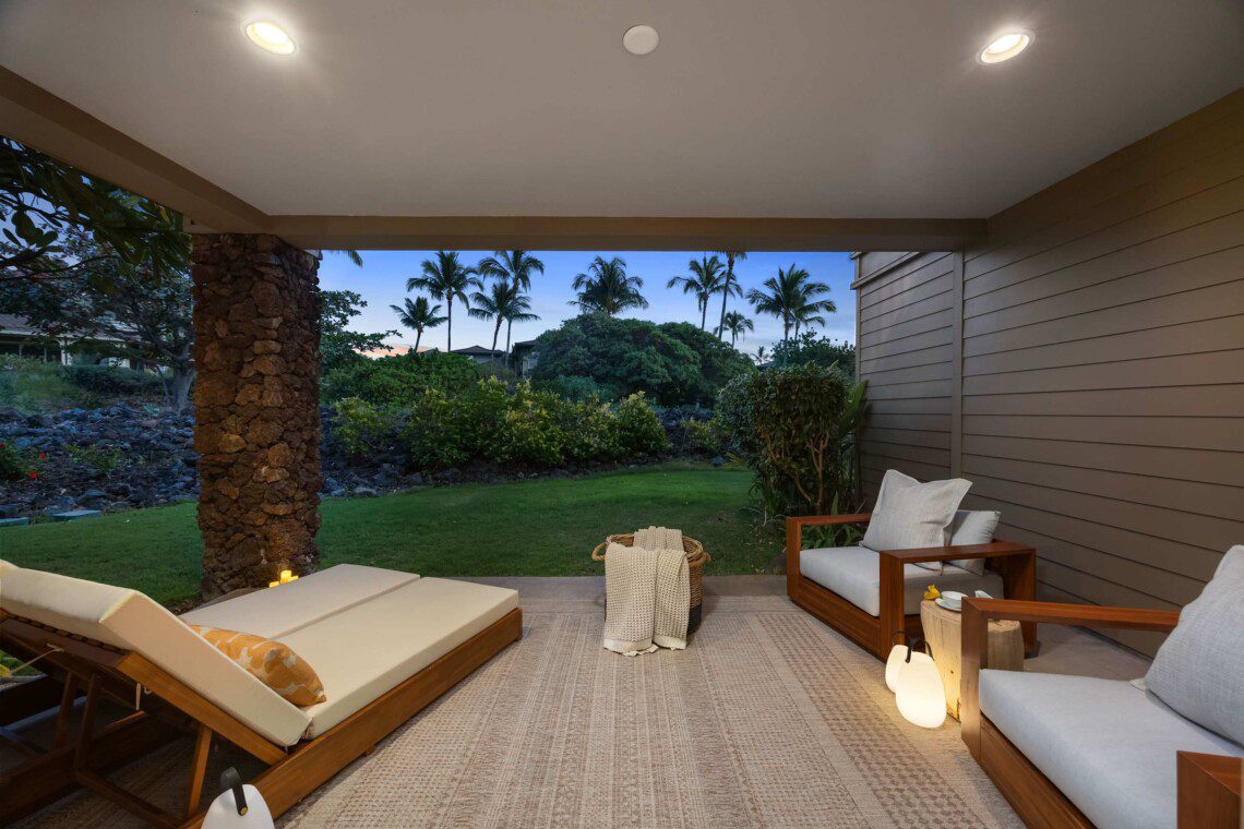Step outside to take in the stunning, unobstructed views — with no fences to block the natural beauty of the mountains, golf course, evening sunsets and nightly stars. Let the trade winds, birdsong, and island light become part of your daily rhythm.