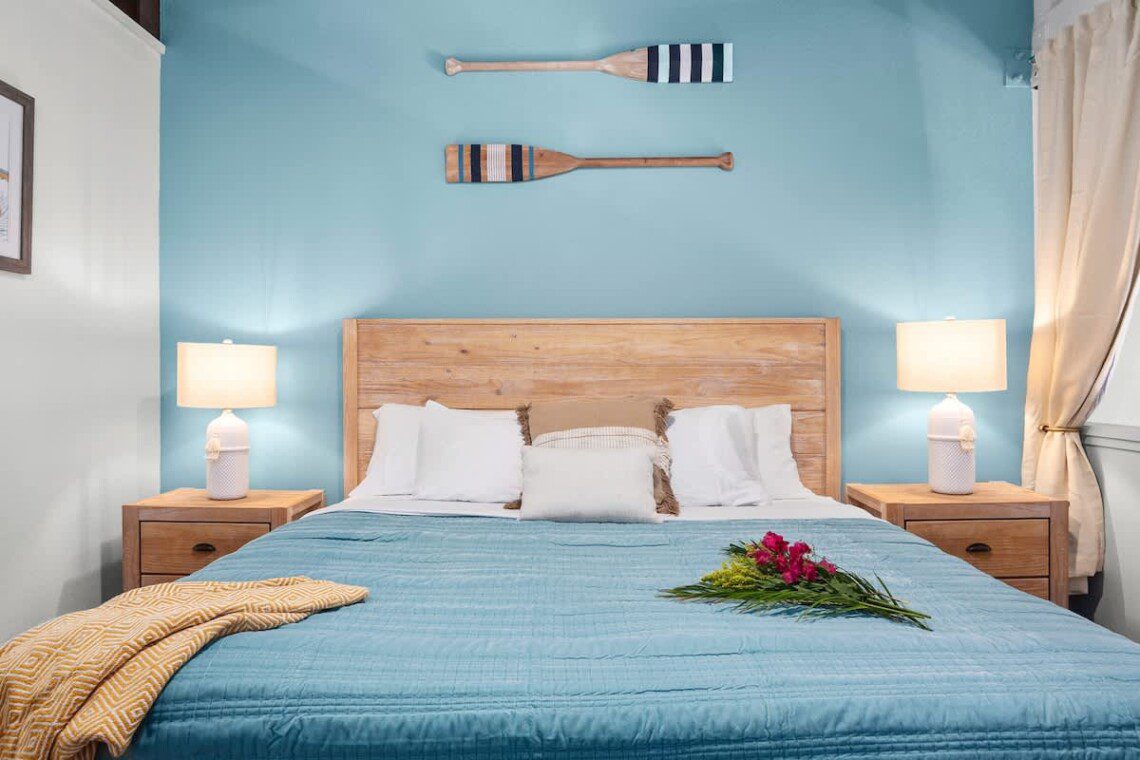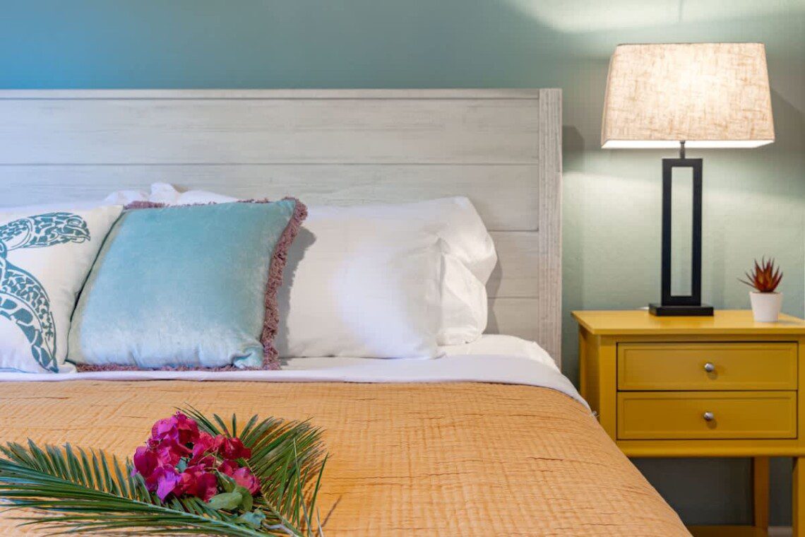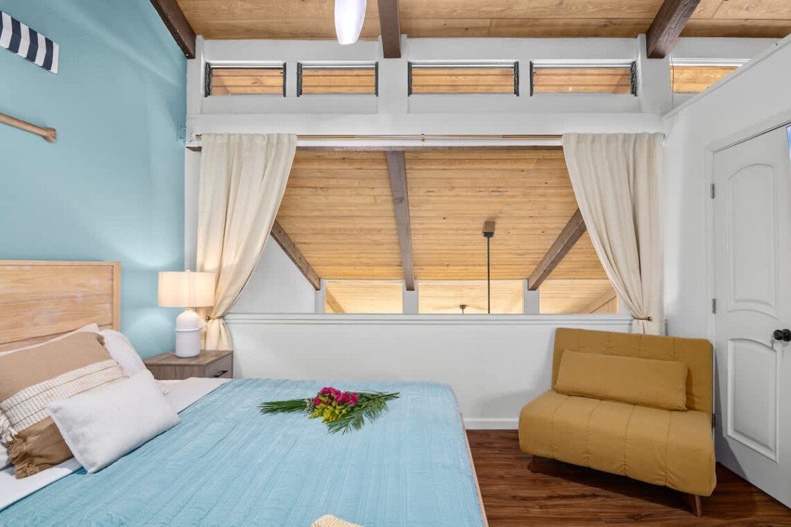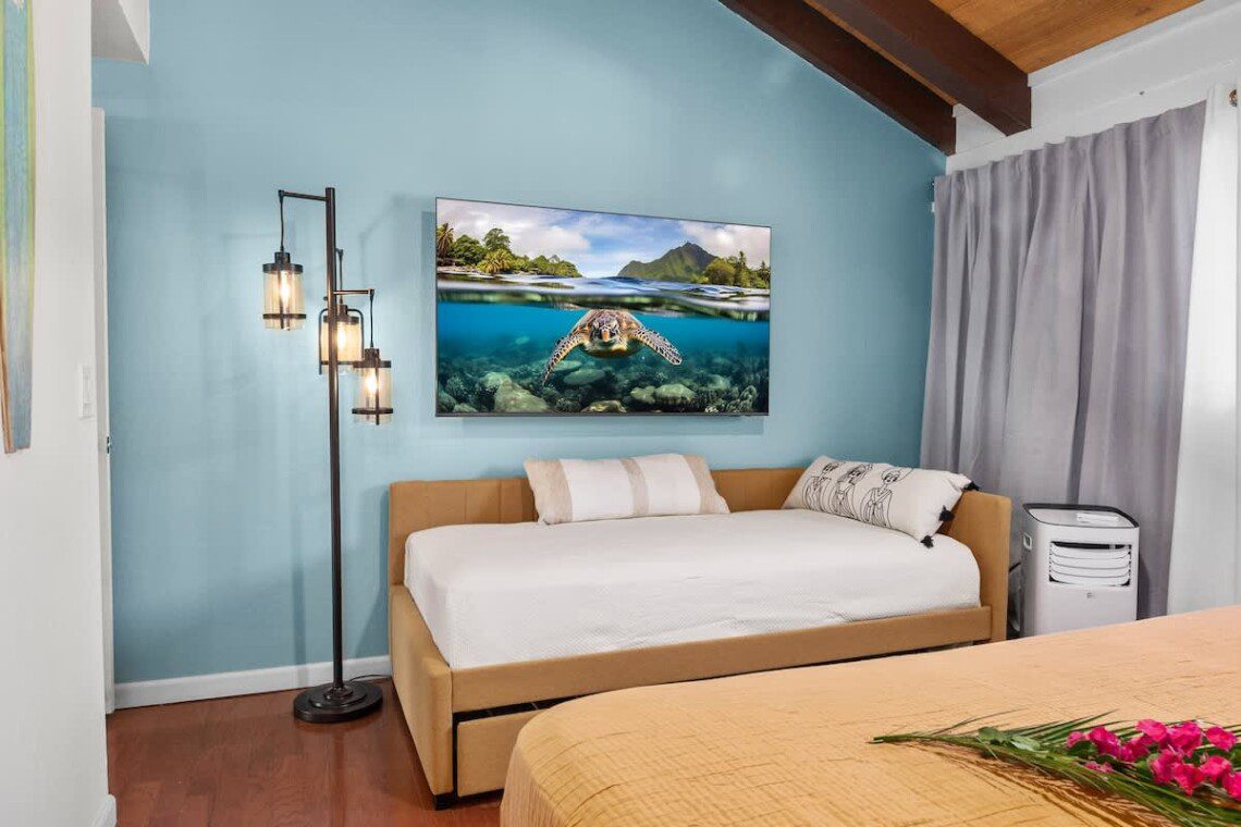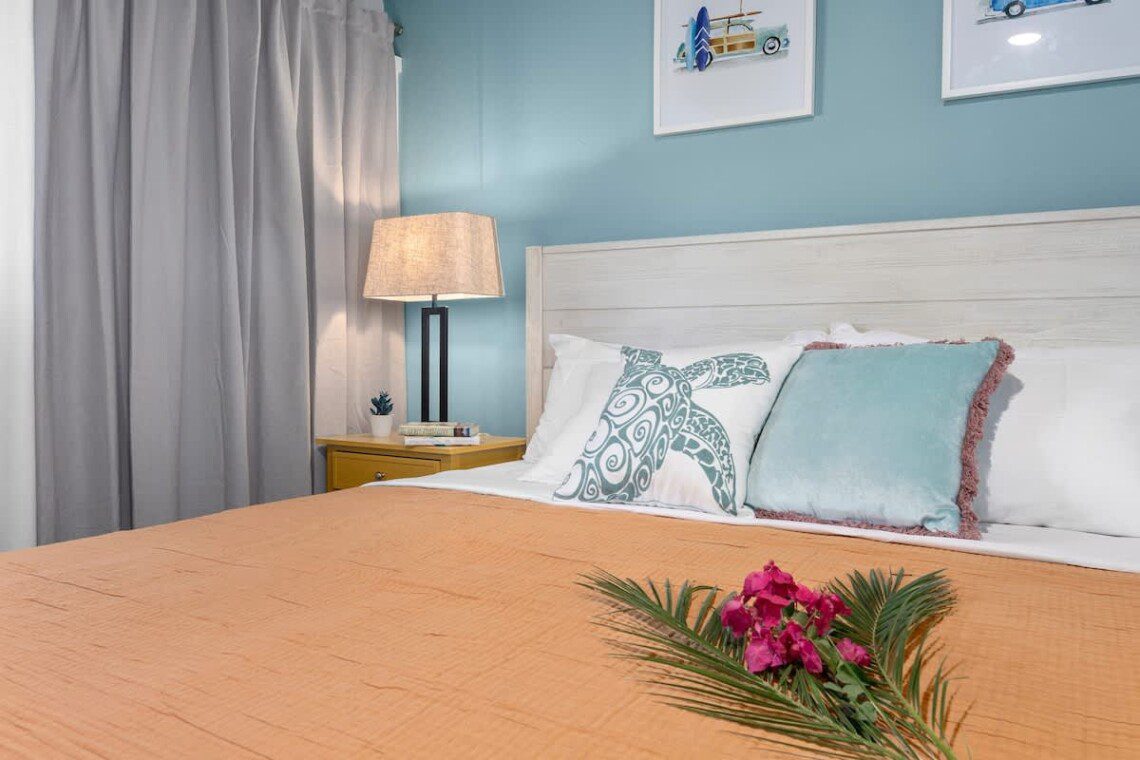 Modern Hawaiian décor, plush bedding, and blackout shades in every room for restful sleep.